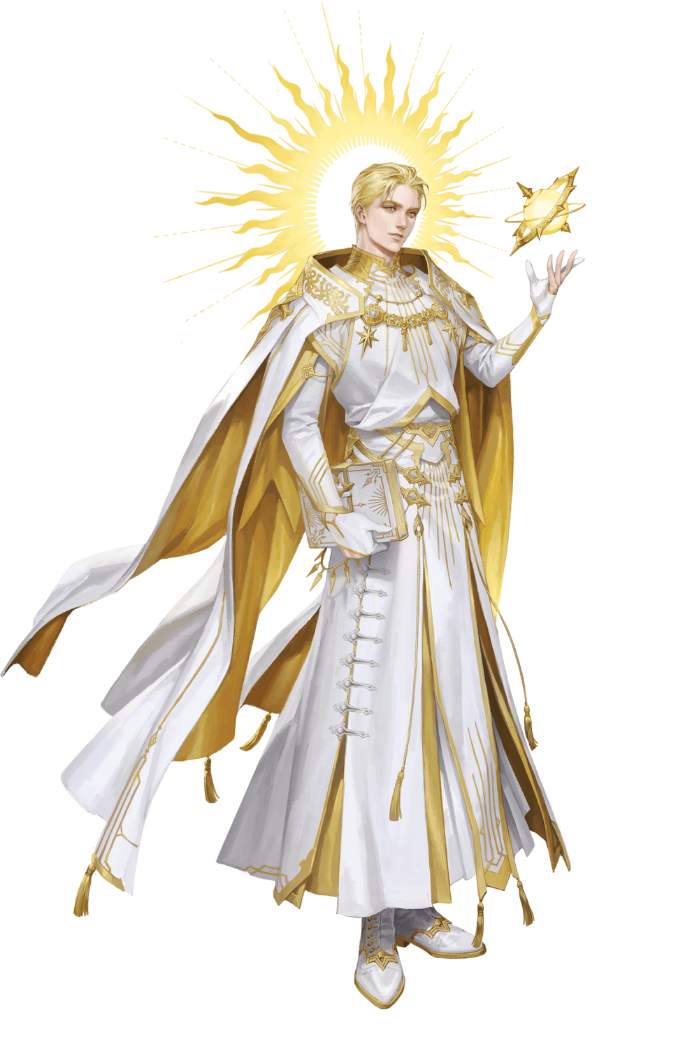 ‘لا… مستحيل… هل يمكن أن الشمس المشتعلة الأبدية قد كان ذات مرة ملاكًا بجانب إله الشمس القديم؟ ذكر الشمس الصغير ذات مرة أنهم سمعوا ندم كنيسي وتنبؤه بأمر ما في مدينة الظهيرة. إحدى الجمل كانت “غالبًا ما كان الملوك يأتون إلى القصر الذي ينتمي إلى الغسق للتآمر…” كان يُطلق على الشمس المشتعلة الأبدية في الأصل اسم الملاك الأبيض، وهو أيضًا ملك ملائكة، واحد خان ذلك الخالق؟’