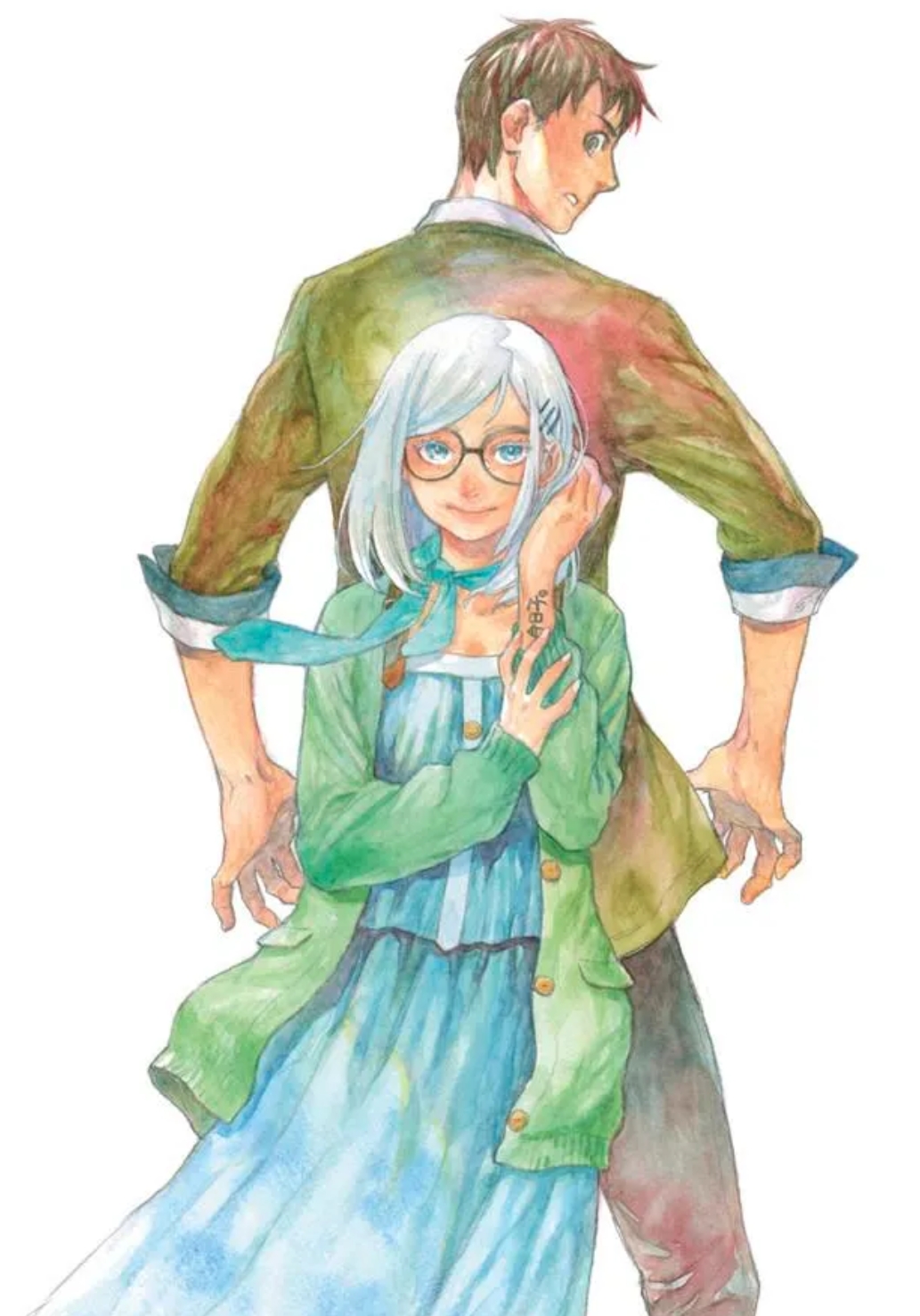 أما ما أثار فضول أكيتشي، فهي الشخصية الجالسة أمامه، والتي لم يظهر منها سوى ظهرها الصغير.. وشعرها الأبيض الناصع.