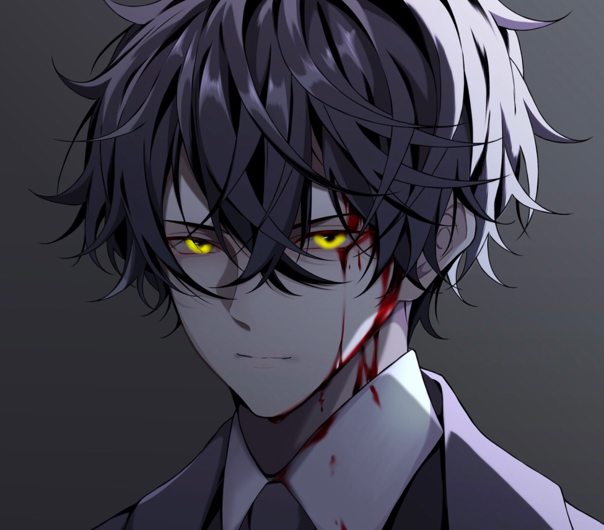 على الرغم ان جانب رأسه ينزف بشده الا ان الشاب ذو الشعر الاسود ظل محافظًا على تعبيره الهادئ بدأ كما لو كان يخفي ابتسامة ساخرة