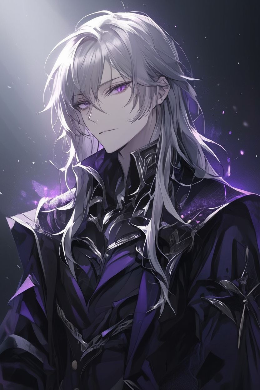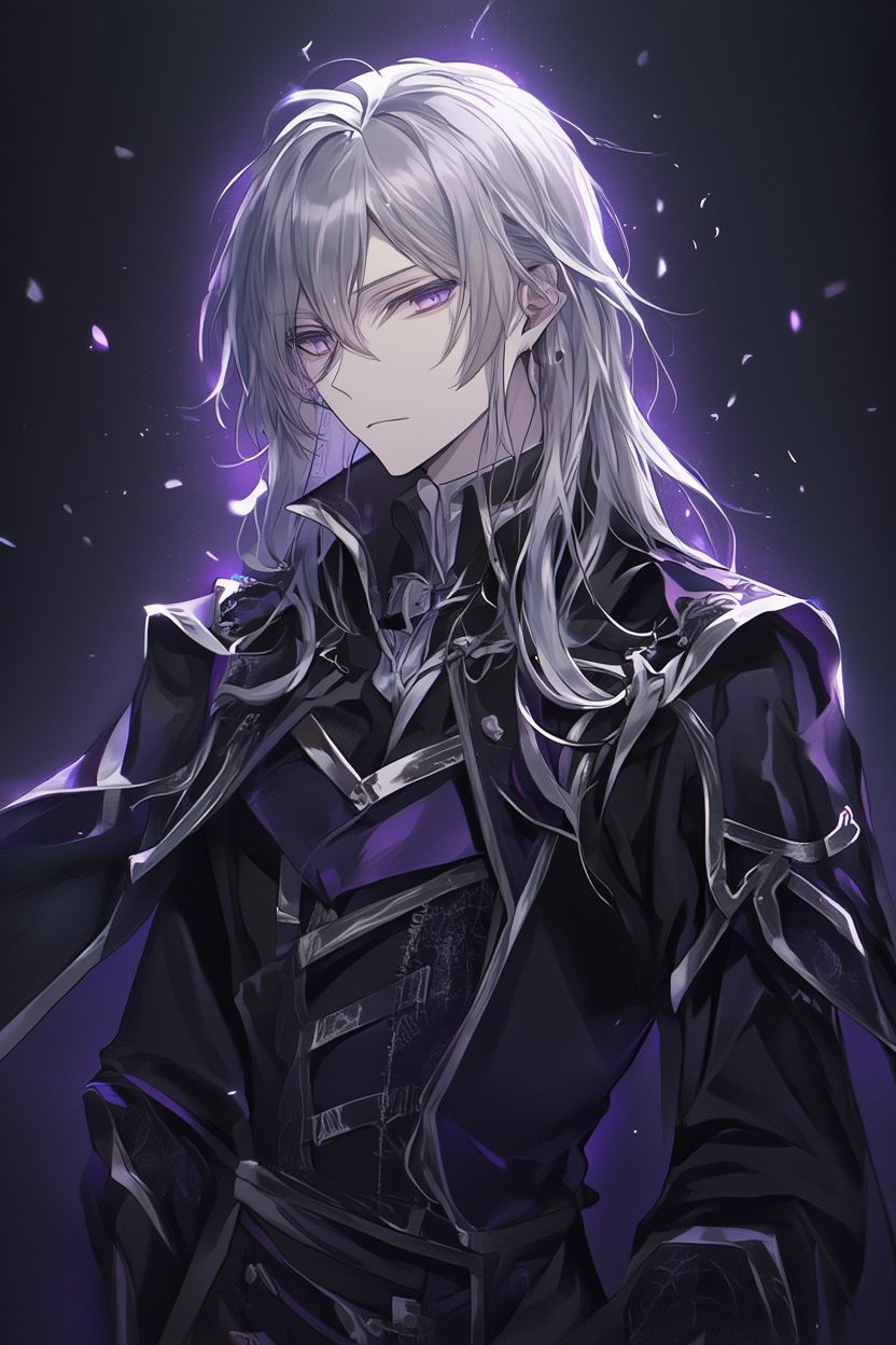 شاب طويل القامة، بشعر فضي طويل ينساب بهدوء على كتفيه، وبشرة شاحبة تعكس برودة دائمة لا تفارق ملامحه.