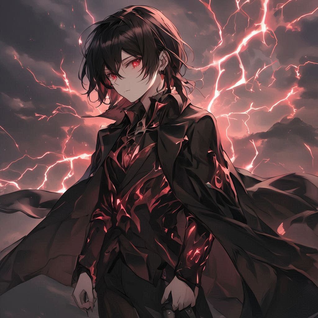 شعره الأسود بقي على حاله، لكن عينيه انقلبتا إلى الأحمر، وجسده بدأ يصدر حرارة غريبة.