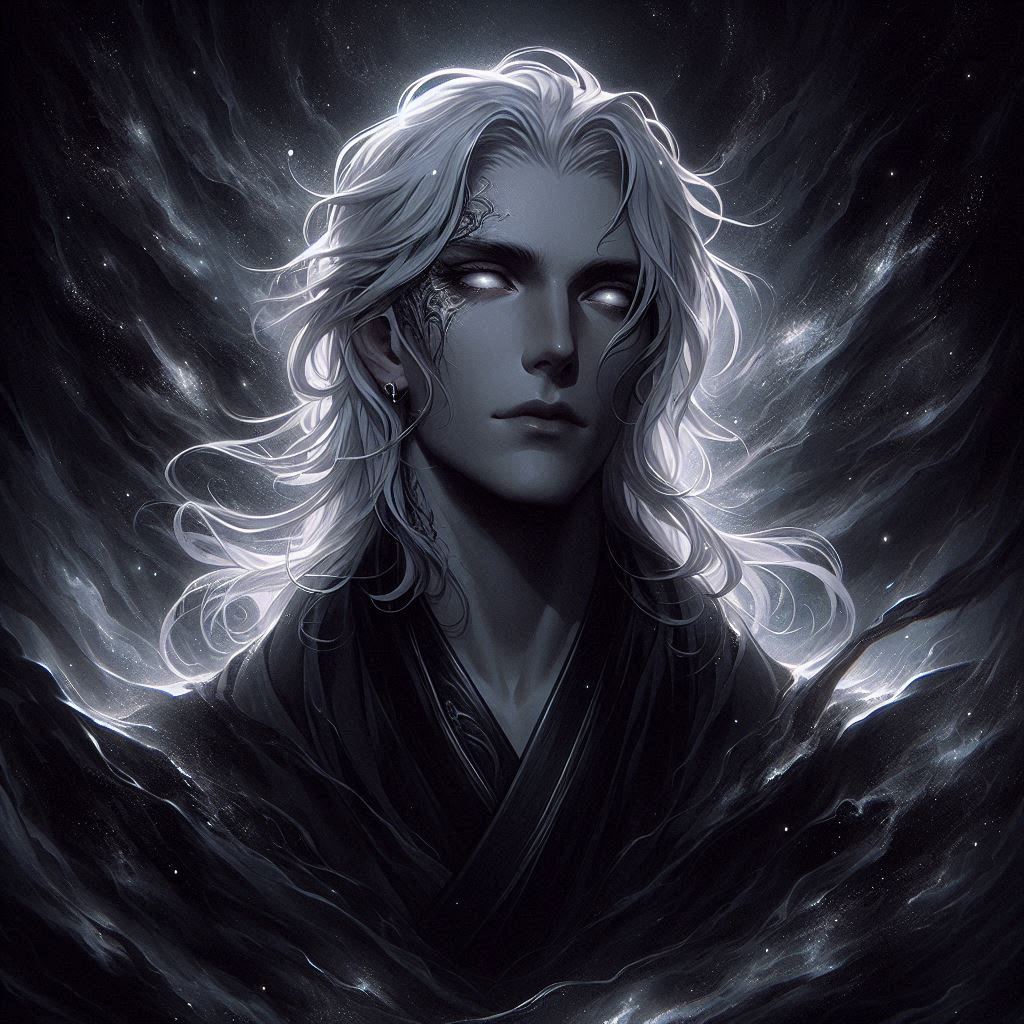 في بُعدٍ عديم اللون، حيث لا زمن ولا ملامح، جلس إيريكثوس على عرشٍ مهيب كأنه مكوَّن من الفراغ نفسه. كان متكئًا بكسل، لا يظهر عليه أي اهتمام بوجود أرين أمامه، وكأن حضوره لا يحمل أي قيمة تُذكر.