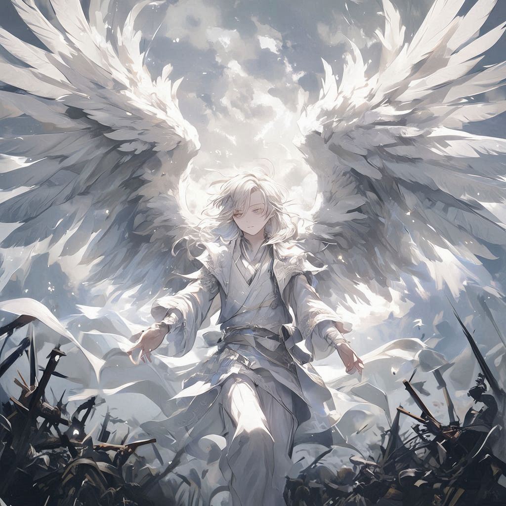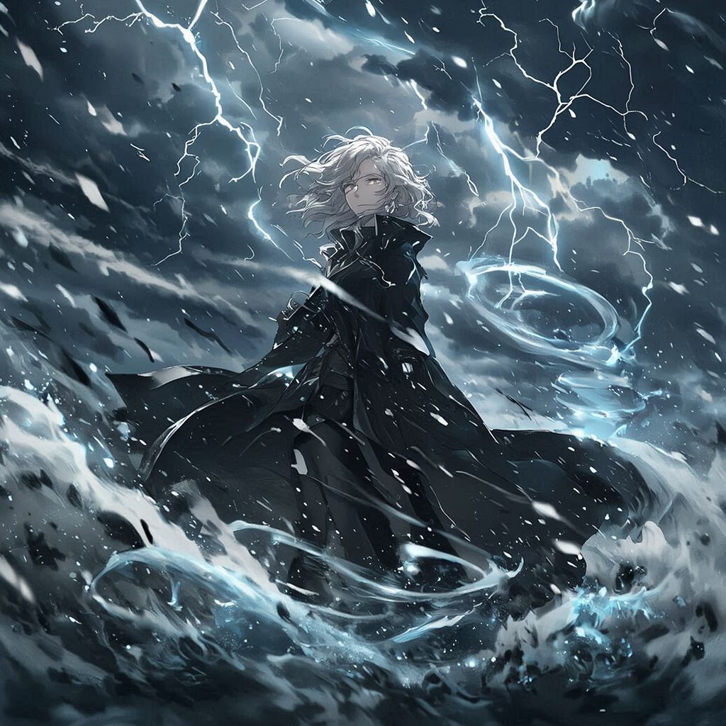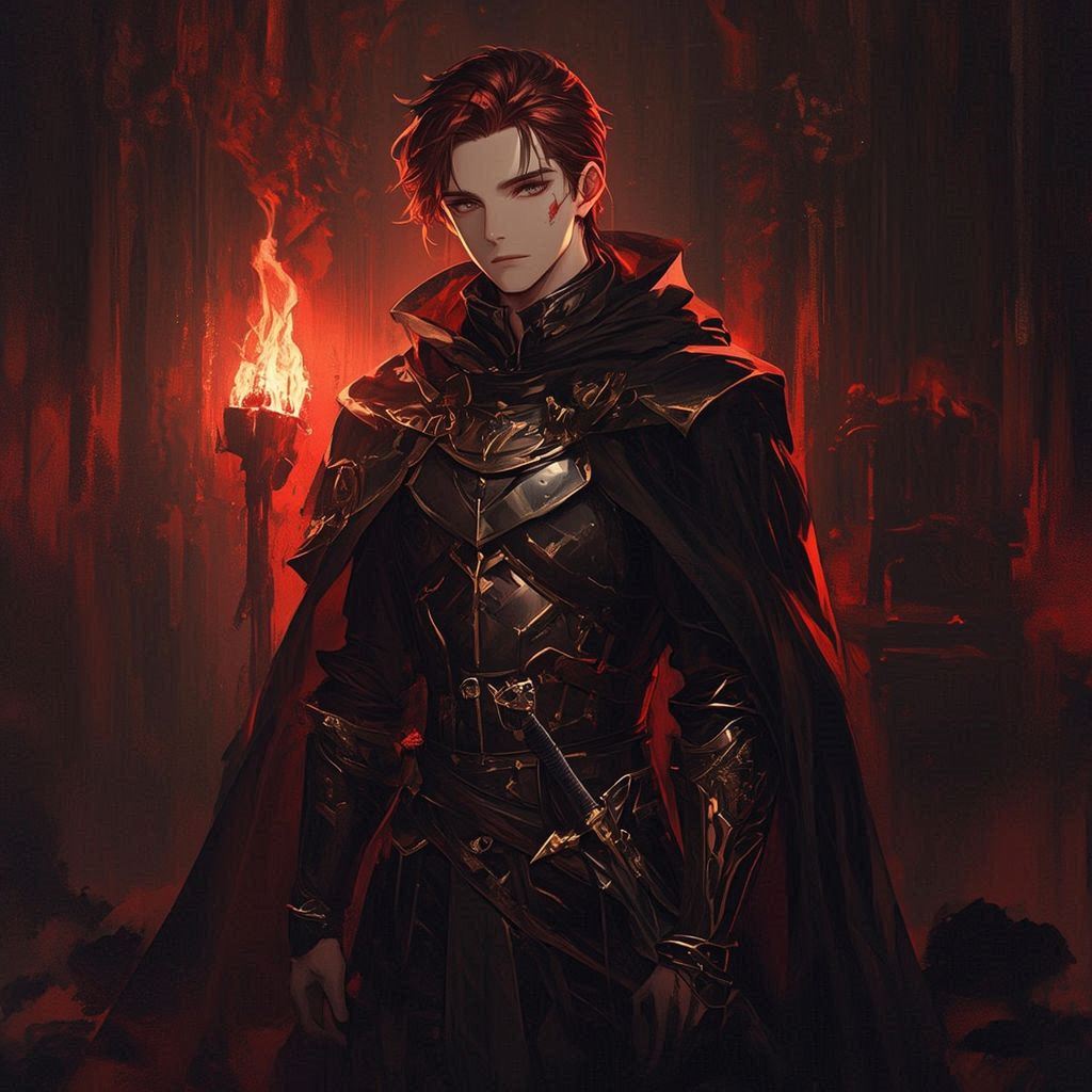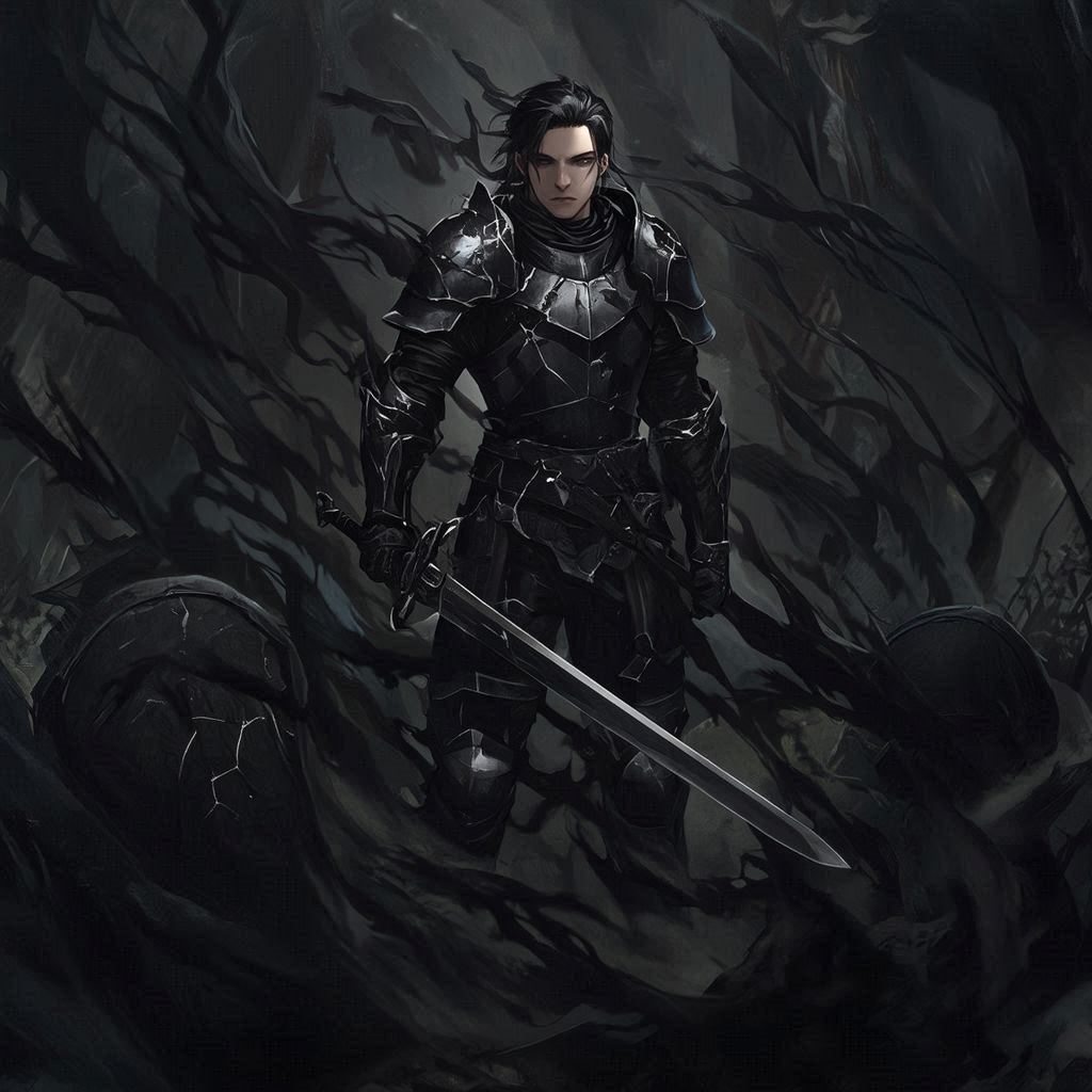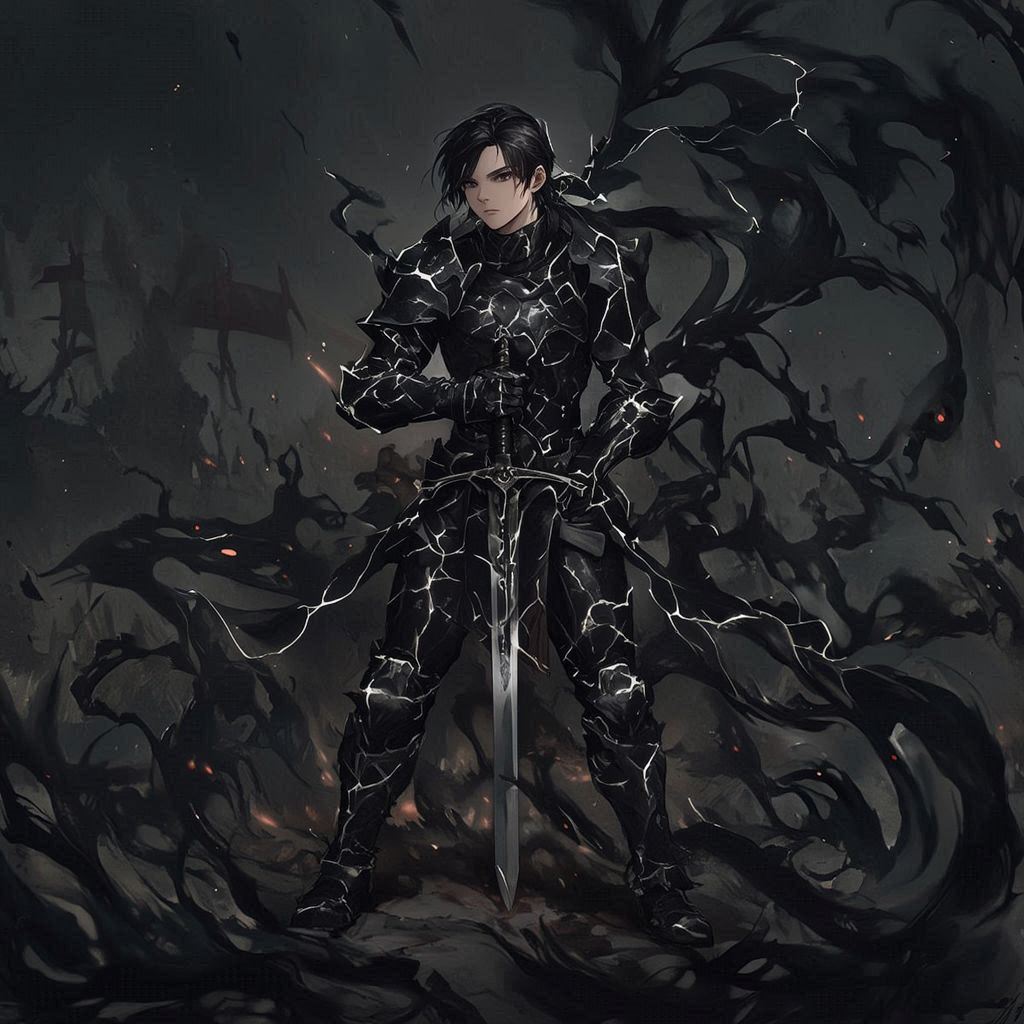 في لحظة واحدة، إسودّ سيفه… و إسودّ درعه… و إسودّ شعره… حتى عيناه اكتست بالسواد. غلّفته هالة مظلمة كثيفة، كأنه خرج من ظلّ لا نهاية له.