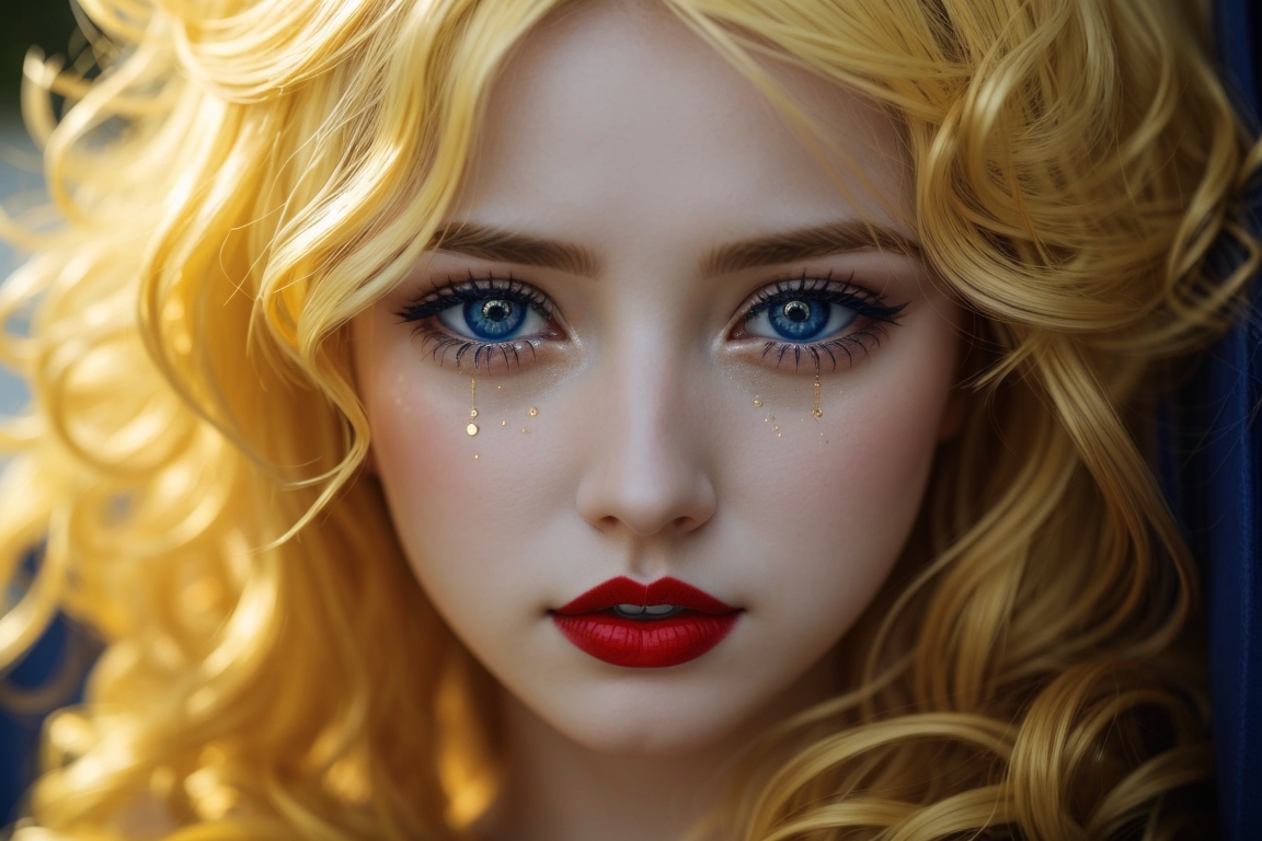 كانت القديسة ترتدي خمارً قامت برَفع الخمار وظهرت عيونها الزرقاء ا الغامقة وشعرها الأصفر الذَهبي وشفتها الحمراء وبشرتها البيضاء وكانت عيونها تدمع