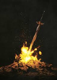 وأشار نحو منتصف الغرفة، حيث ظهرت نار غير مشتعلة بعد، مغروسة في مركزها سيف لولبي غريب الشكل.